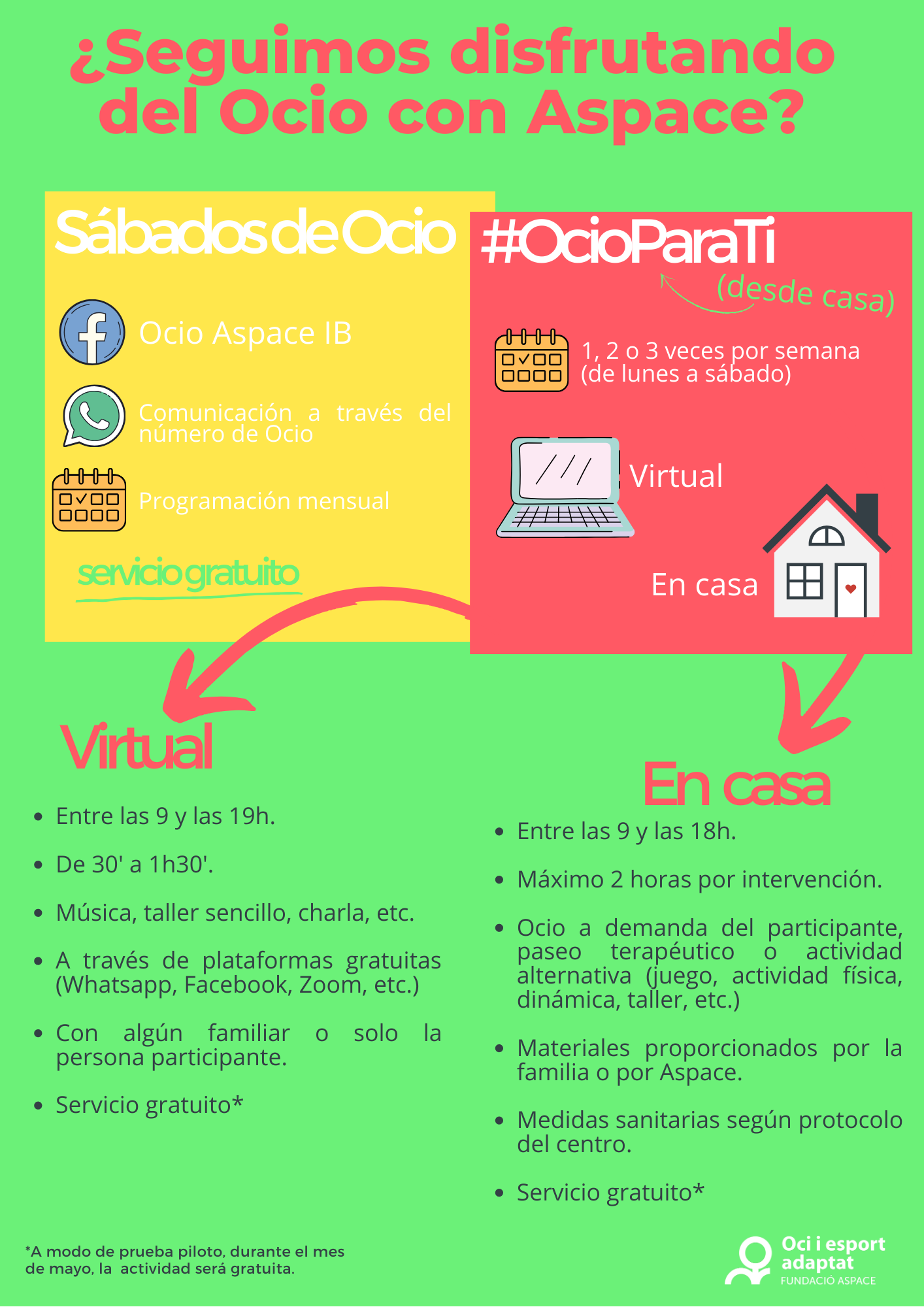 Además, el servicio de Ocio y Deporte Adaptado continuará con el desarrollo de los Sábados de Ocio a través del grupo de Facebook Ocio Aspace IB.